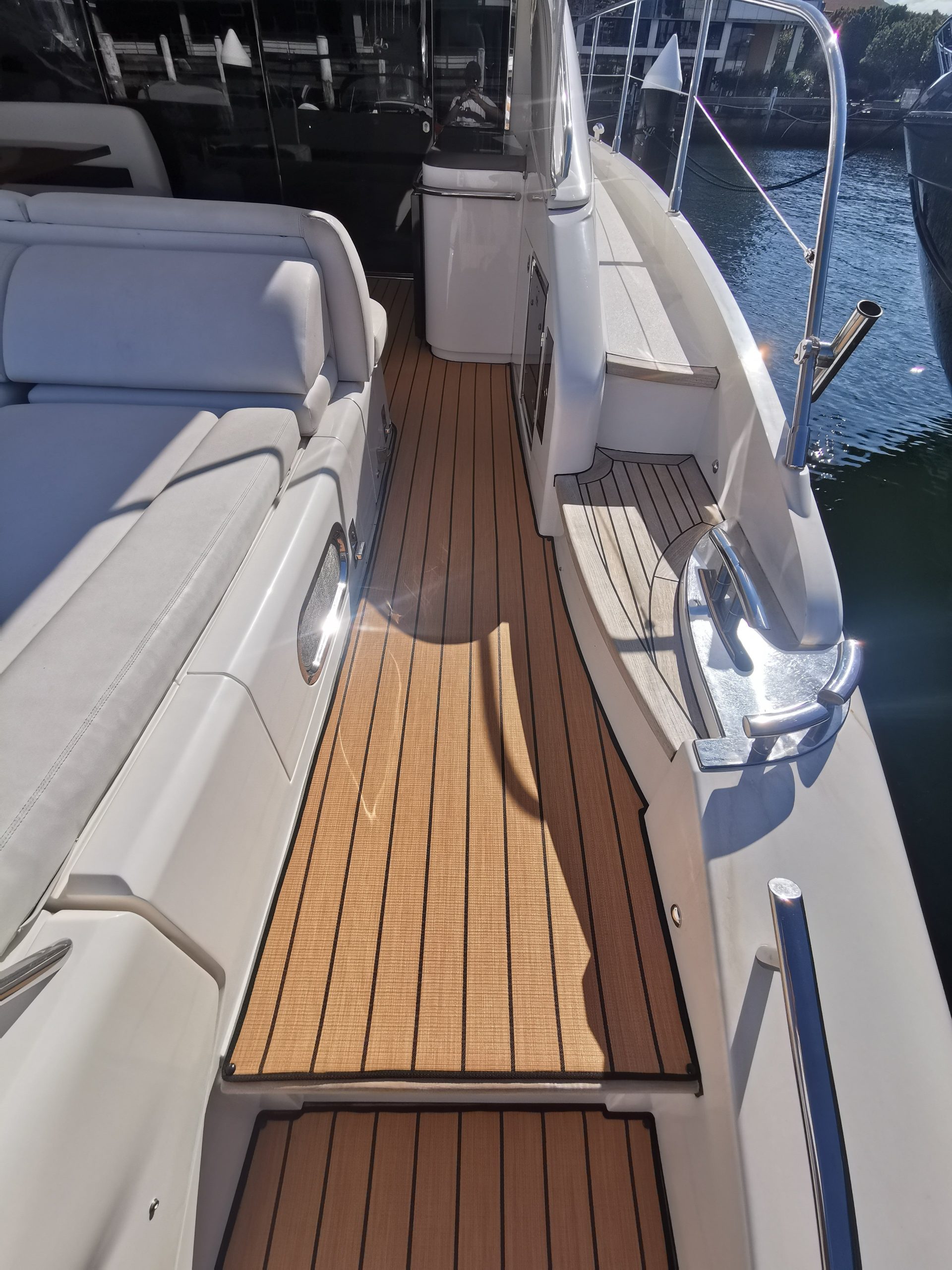 For the first time, a luxurious, externally durable and soft floor is a practical alternative to carpet, tiles, concrete and timber when considering marine or outdoor decking requirements. The lightness of Infinity means that the decking does not require the same structural requirements and rigidness it does for heavy tiles.